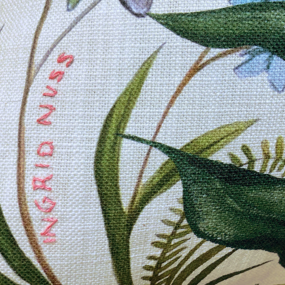 - Hand embroidered Ingrid Nuss signature